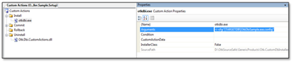 This is to update the connectionString of your application's config file. - Add Otk.Dbi.CustomActions.dll as Uninstall custom action.