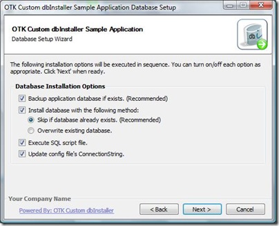 - Option to execute post-install custom Transact-SQL script supplied by the developer.
